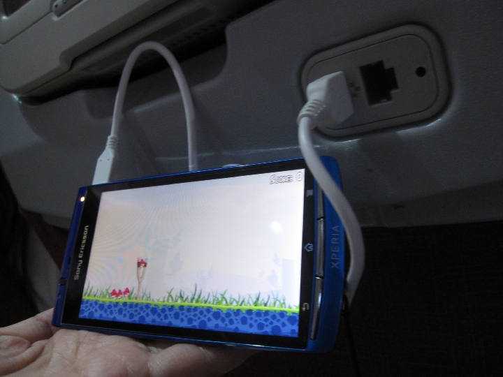 ちなみに画面は機内で遊ぶために落としたAngrybird。すげーおもしろくてハマりました。皆さんの口コミは正しかった。