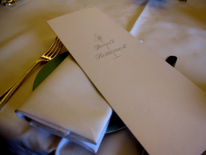 英国紳士に案内されて席に着き、メニューを開きます。どきどき。