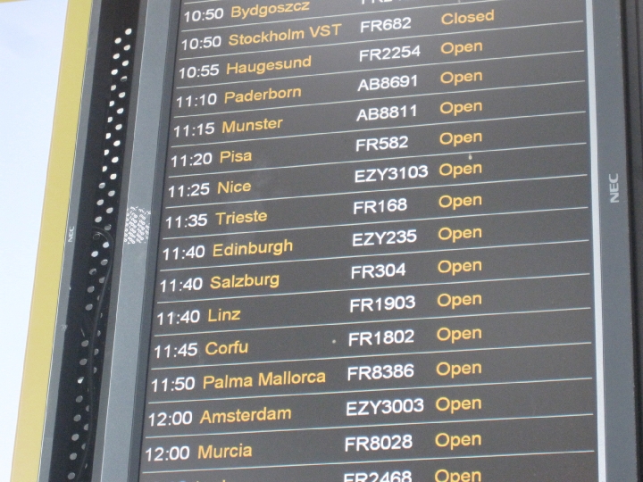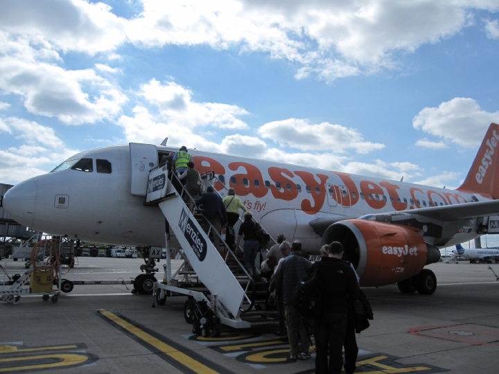 飛行機の掲示板。欧州の格安航空会社、easyjetでまいります。