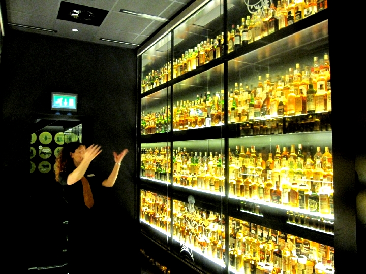 試飲しながらガイドのお姉さんが連れてってくれた場所は、スコッチウィスキーのコレクションの部屋。ずらりと!