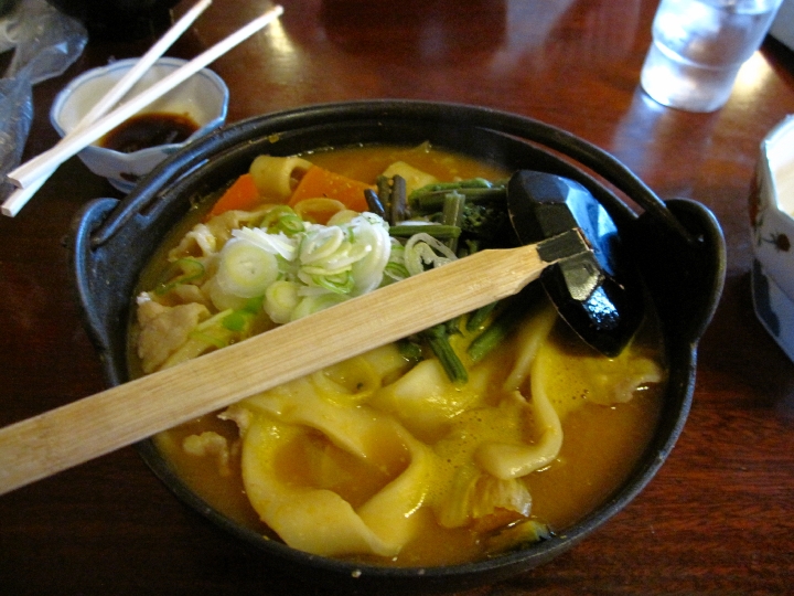 豚肉ほうとうは思いのほか美味しかったです。豚肉って偉大だよね。