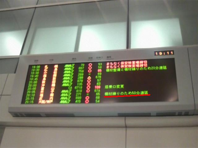 飛行機には結構乗りますが、自分の乗る飛行機が50分も遅れるなんて初めての経験でしたよ。