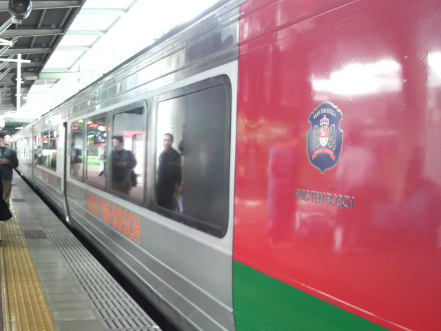 で、今から長崎に向かいます。乗り場に行ったらこんな素敵電車でした。ハウステンボストレイン!