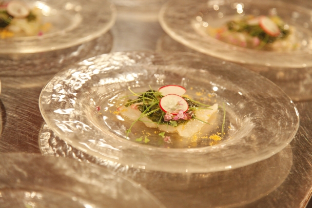 真鯛のカルパッチョ 生海苔ドレッシング カラスミ添え