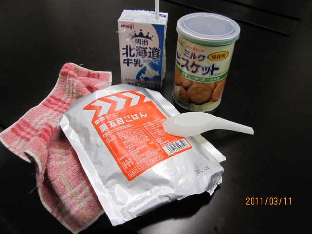 19時。総務部から「非常用食品配っていいよ」という指示が出る。
