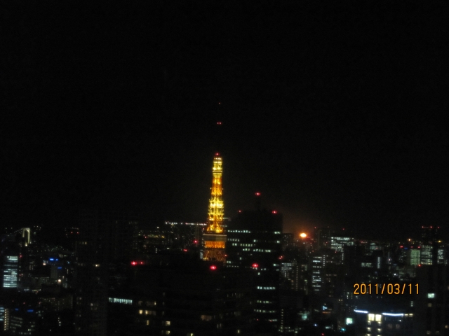 東京タワーのアンテナが曲がった、と聞いて、窓のそばから見てみる。