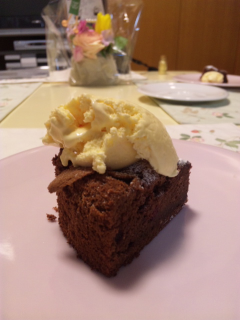 こちらはムースに比べると手順が簡単だそうで、私向きですね。でもやっぱりおいしかった。上に乗っているのはバニラアイスです。